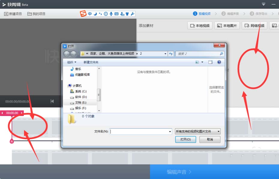 2、這兩個位置都可以雙擊,打開視頻添加框。