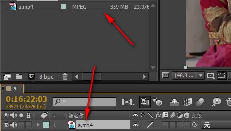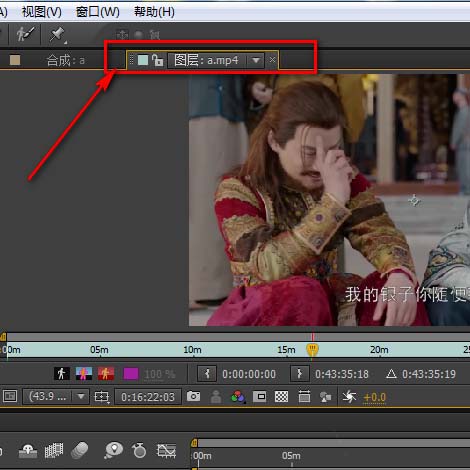 4、如圖所示,雙擊視頻之后,AE里面就會自動生成一個“圖層”,在這里就可以剪切視頻了。