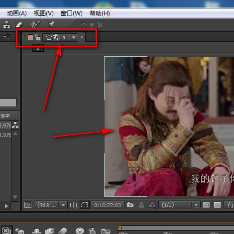3、之后,AE上方的中間就會出現一個合成選項,我們雙擊合成里面的視頻即可喲。