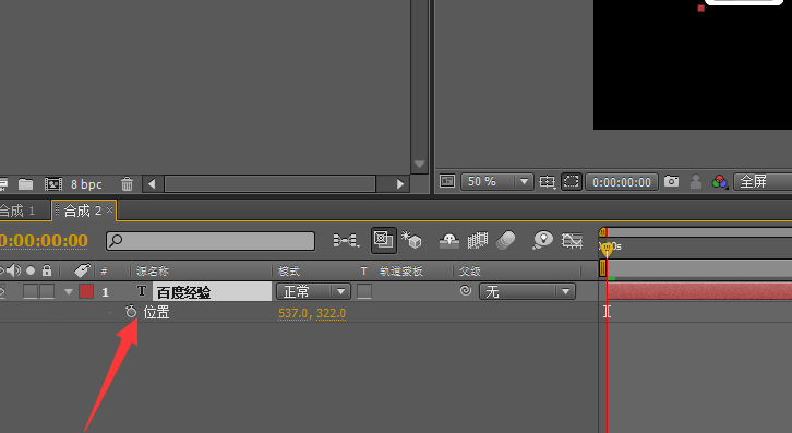 3、我們在位置上打入關鍵幀,這里我們做的X軸的動畫,拖動時間幀,就可以看到動畫了!