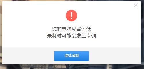 6、確認完成之后,會出現這樣的紅框框,我們點擊紅色按鈕開始錄制就行了,如果電腦配置過低,就有這樣的提示,不過問題不大,雖然小編的電腦每次這樣被提醒,但是從來沒有卡過。