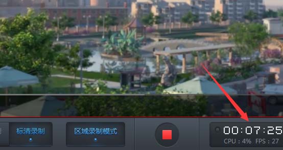 7、已經開始錄制了,右下角這里顯示的是cpu的功耗率,錄制的時間,錄制的大小,這個大小會隨著時間變化而變化,以及錄制出的視頻的參數。