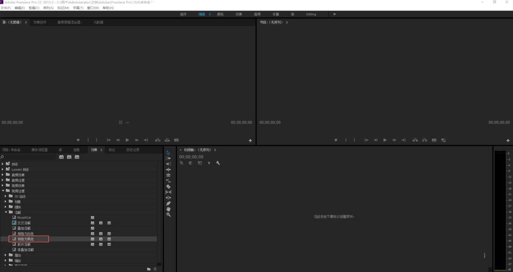3、雙擊導入素材文件,并將素材拖動到時間線窗口,并將2段素材首位相接;