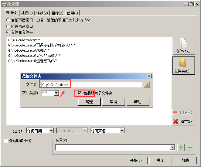 點擊 ”文件“ > 批量 ,選擇添加文件夾 然后 勾上 包括所有子文件夾