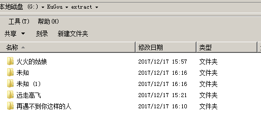 然后到 上面選擇的包括目錄 我本地的是 G:/KuGou/extract,打開就可以看到了很多的目錄,一個光盤一個目錄自動保存好了