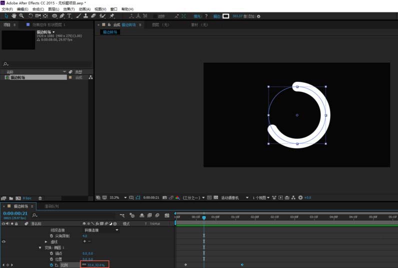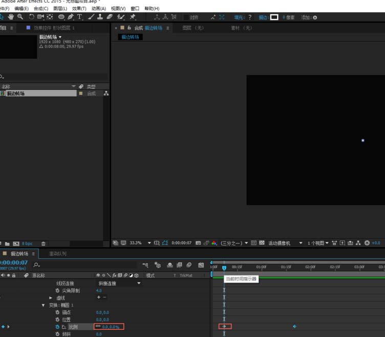 4、找到描邊變換下的【比例】屬性,設置關鍵幀;