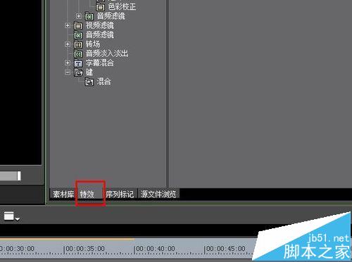 2、在新建的工程文件中打開特效面板。