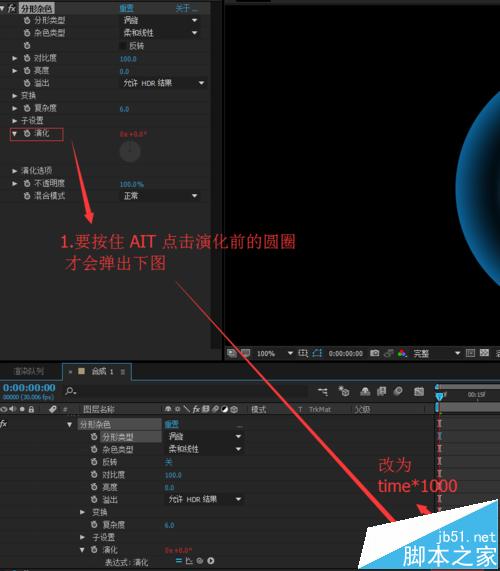 12、為了這它動起來,我們添加表達(dá)式,按住AIT不松,點(diǎn)擊演化前的小圓圈,會出現(xiàn)表達(dá)式,輸入tiem*1000