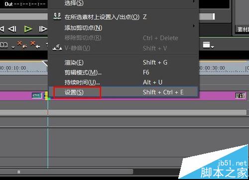 4、選中添加到時間線上的 Alpha自定義圖像 轉場效果,單擊鼠標右鍵,在彈出的右鍵菜單中選擇 設置 選項。