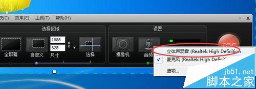 6、然后返回到Camtasia Studio 6錄制面板,點擊音頻旁邊的下拉箭頭,會看到有一項是立體聲混音,然后勾選就可以錄制電腦上的聲音了。