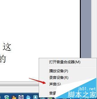 2、然后在電腦右下角的任務欄中右鍵點擊聲音(喇叭圖標),點擊聲音選項。