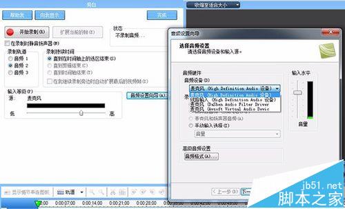 1,在錄屏工具箱的麥克風(fēng)右邊有個倒三角,我們點擊會彈出聲音輸入設(shè)備,我們選擇AV開頭的聲卡,效果一樣
