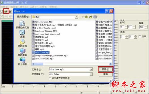 接下來,在打開的窗口當中選擇要編輯的音頻文件,然后單擊“打開”按鈕,將音頻文件導入到音頻編輯大師軟件當中。如圖5所示。