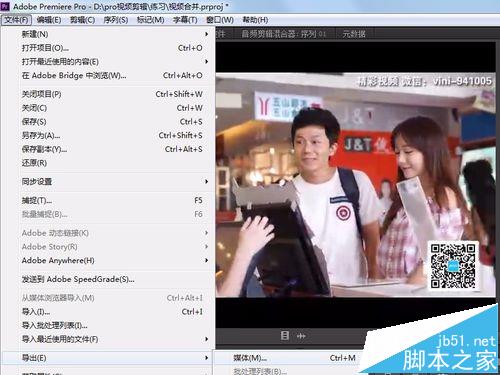 9、好了,然后我們需要將視頻導(dǎo)出,點(diǎn)擊左上角“文件”,在下拉菜單選擇“導(dǎo)出”按鈕,在二級子菜單選擇“媒體”