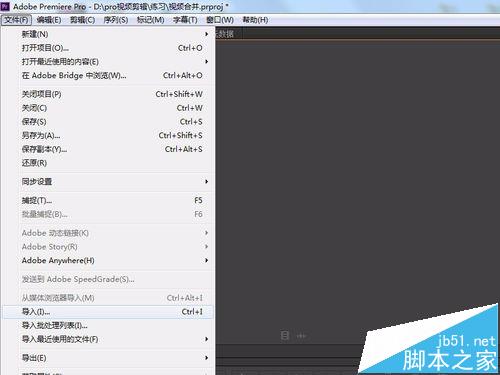 5、然后就需要導(dǎo)入我們需要合并的兩段視頻,點(diǎn)擊左上角“文件”,在下拉菜單選擇“導(dǎo)入”,然后在彈出界面找到我們需要合并的視頻,點(diǎn)擊“打開”,就可以將視頻導(dǎo)入到序列中