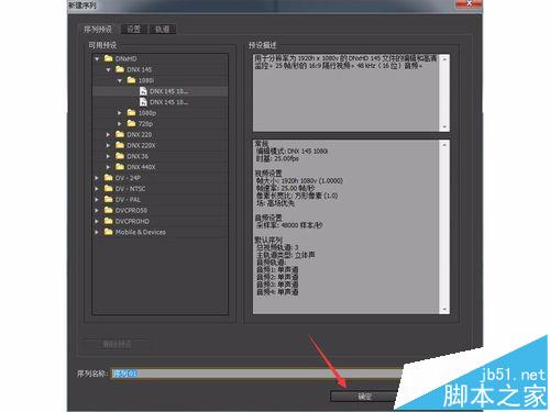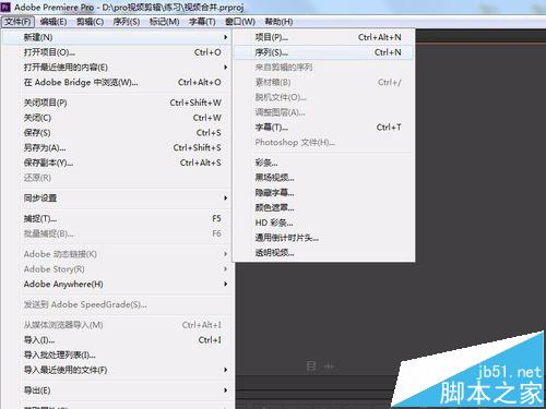 4、然后需要建立一個(gè)序列,通俗來講就是建立一個(gè)編輯界面、時(shí)間軸等,其實(shí)這塊不需要理解透徹,會(huì)建立就行,建立步驟看下圖,依次點(diǎn)擊左上角“文件”、“新建”、“序列”,在彈出設(shè)置界面可以默認(rèn)不更改,點(diǎn)擊“確定”