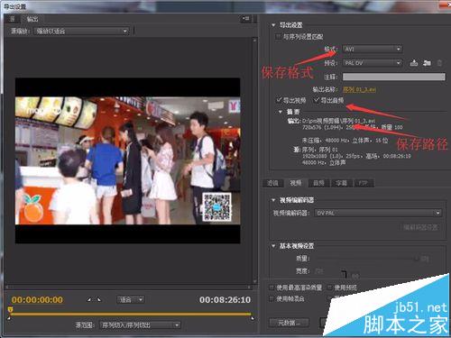10、在彈出的界面我們需要選擇保存視頻的格式,記住保存路徑(如果弄好了路徑不記得,然后你又不會(huì)查找文件,那你就白做了),還可以選擇視頻、音頻,所以這里說明pr不僅可以合并視頻,音頻也是可以合并的