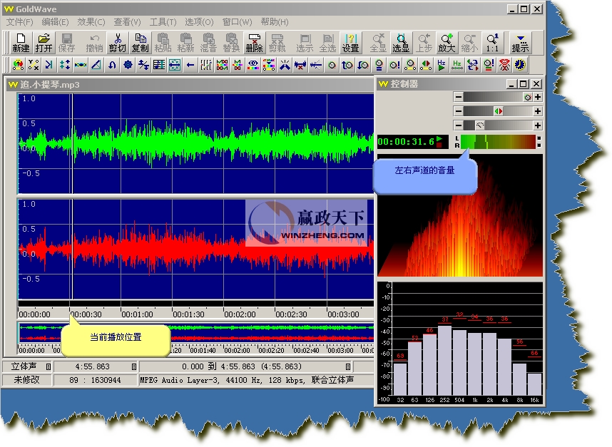 在控制器中可以看到具體的波形,以及左右聲道的音量等信息....
