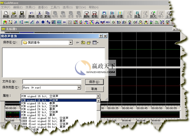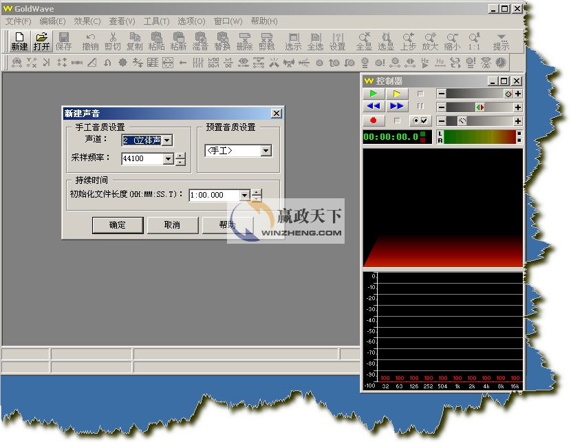 要打開文件進行保存,首先當然是要打開一個文件了。先前我們已經看過了GoldWave 的啟動界面,這里就不再重復了。