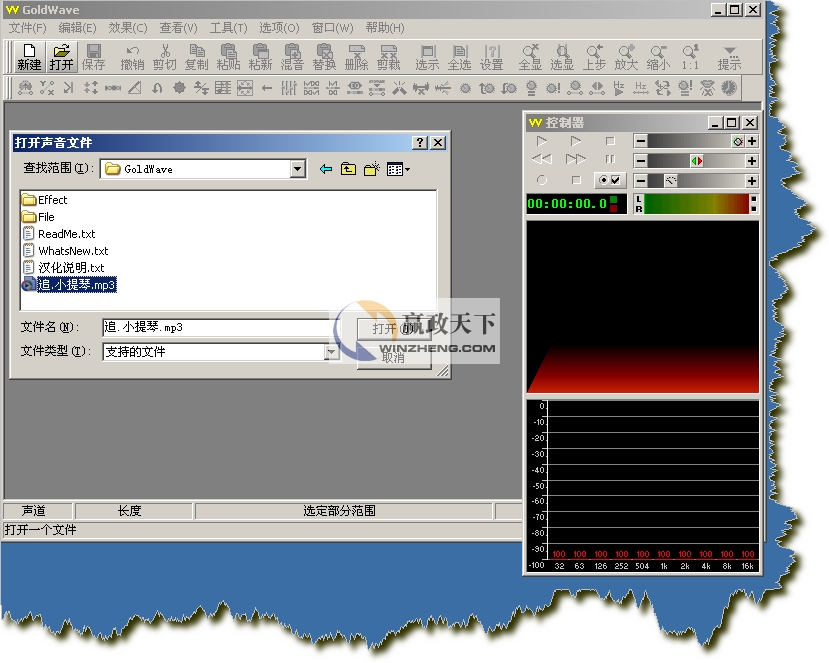 單擊“打開”按鈕,或者“文件”——“打開”,選擇一個聲音文件