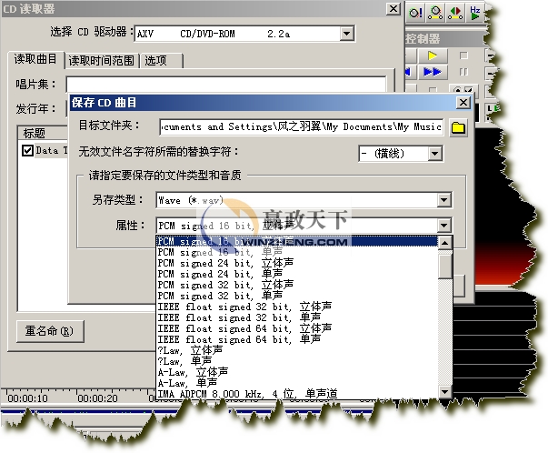 選擇CD后,點擊保存,直接可以另存為您需要的音頻文件