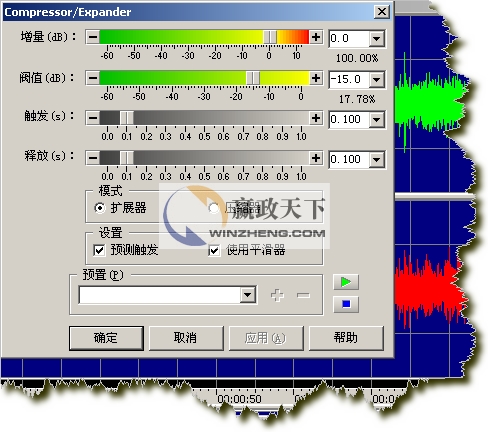 這時候,我們就需要用到壓縮器、擴展器,通俗的說,就是把高音“壓縮下去”把低音“擴展上來”,對聲音的力度起到均衡的作用。