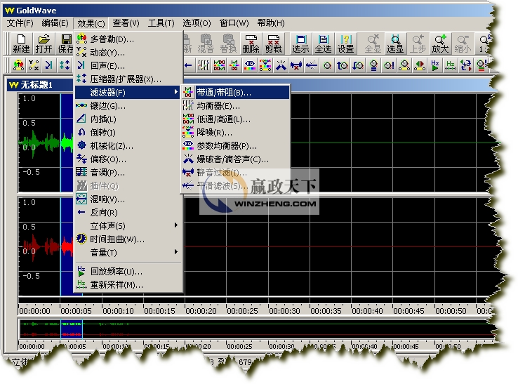 選擇“效果”——“濾波器”——“均衡器”