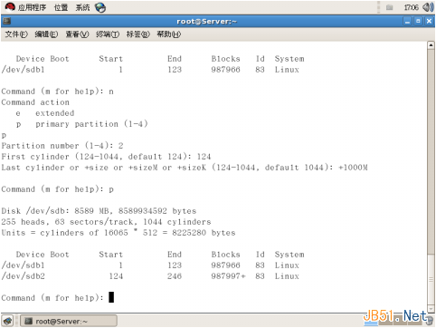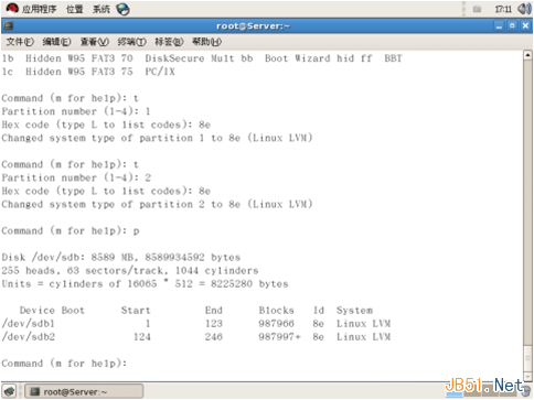 2、給磁盤分區(創建PV) 在/dev/sdb上劃分兩個分區
