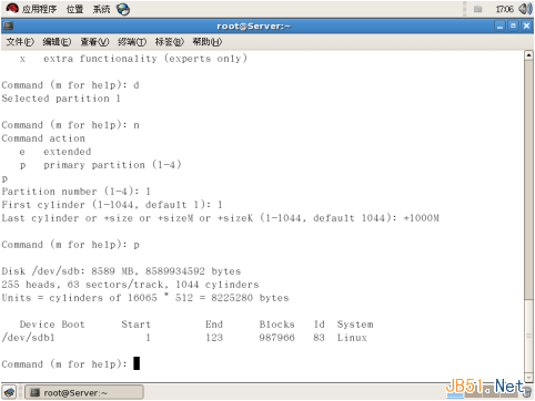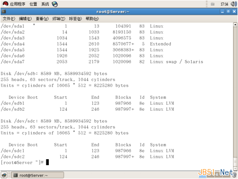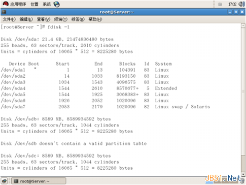 3、用fdisk –l 命令查看分區表