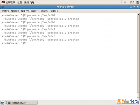 4、建好分區后,用pvcreate命令在新建的分區上創建PV