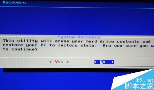 2、進入安裝界面后,會首先提示這個工具會刪除整個硬盤上所有的數據,詢問用戶是否繼續。如果之前硬盤中有數據,一定要在這一步之前通過其他方式導出。選擇Yes繼續