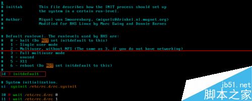 1、事先將/etc/inittab備份為/etc/inittab.bak方便后面的恢復