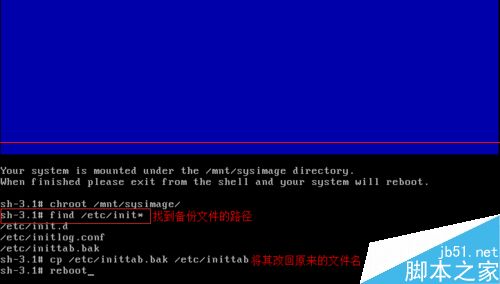11、按照以下操作找到之前的/etc/inittab.bak文件并改成/etc/inittab就可以了然后reboot重啟就好