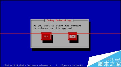 5、提示是否設(shè)置網(wǎng)卡信息,一般不設(shè)置,我們用tab鍵切換到no即可