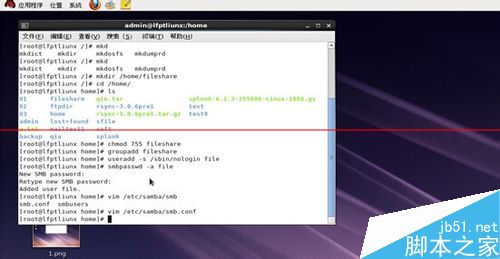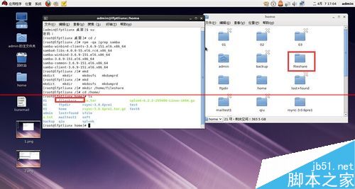 3、建立共享文件夾,命令如下:Mkdir /home/fileshare;如下圖:
