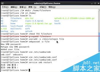 5、設(shè)置好文件夾權(quán)限,命令如下:Chmod 755 fileshare;