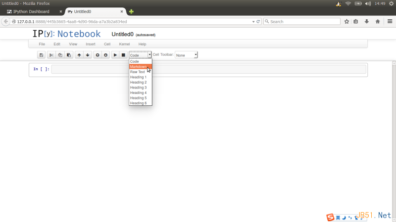 新建一個筆記后,就會給我們一個輸入代碼的提示。ipython-notebook中的內容是由一個一個的輸入區域組成的,稱為Cell。每一個Cell除了可以輸入代碼,還可以輸入Markdown、rawtext、heading,如上圖中的選項所示。下面是輸入Markdown的效果圖: