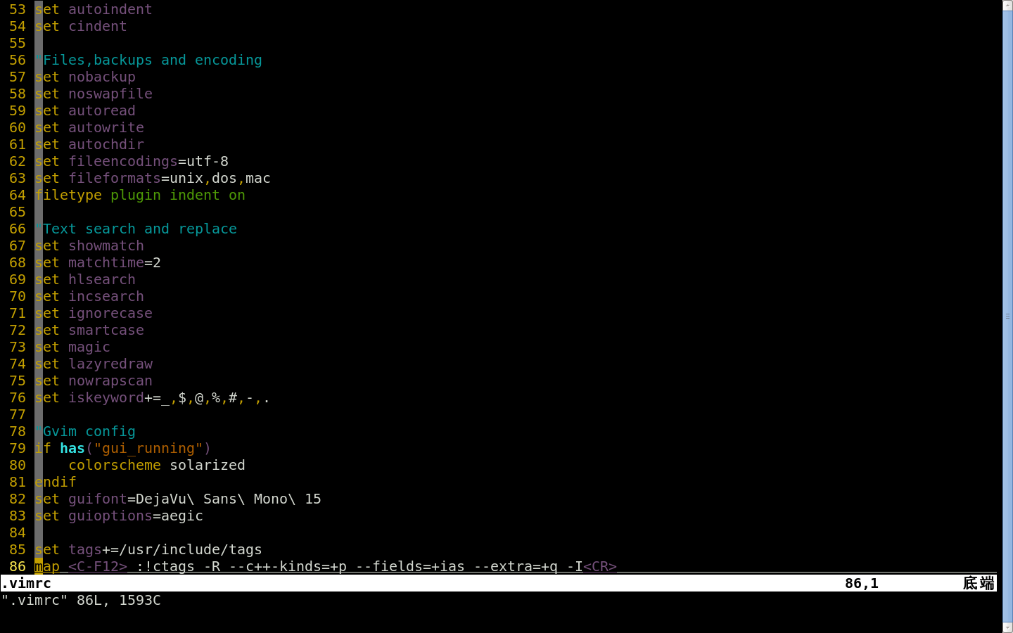 然后將該tags文件的路徑加入到.vimrc配置文件中,同時設置一個鍵盤映射,使得按Ctrl+F12時,在工作目錄中調用ctags命令。如下配置文件的最后兩行: