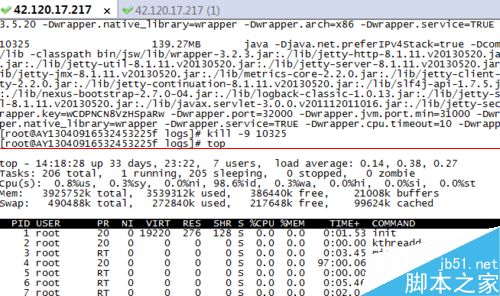 6、直接kill掉,然后再top查看。ok,swap一下子釋放了很多,搞定。