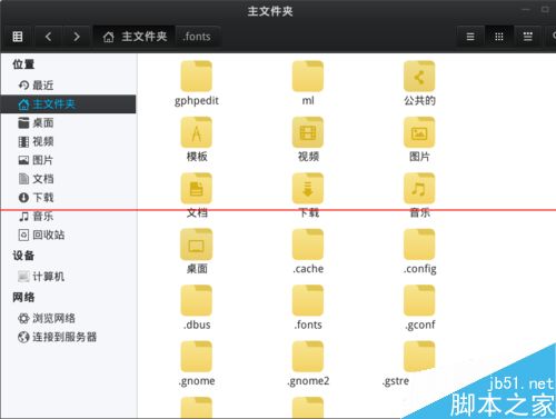 2、進(jìn)入主文件夾,按Ctrl+h鍵(顯示隱藏文件),查看有沒有.fonts文件夾,如果沒有就創(chuàng)建一個(gè)