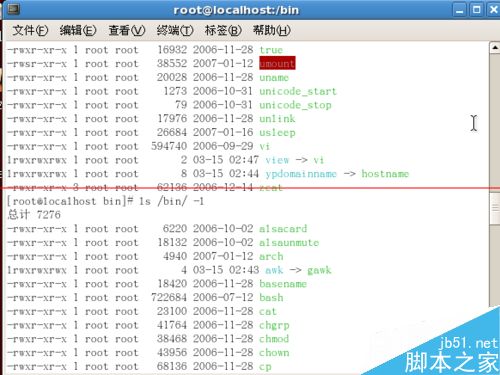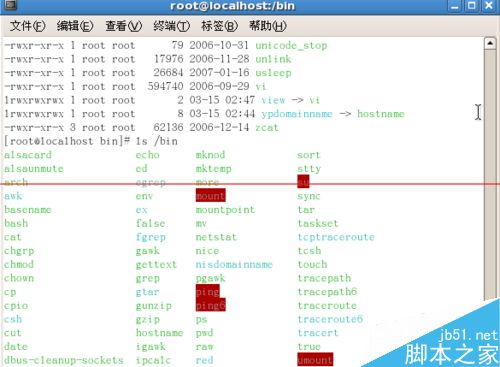 3、當然,你也可以用ls /bin/ -l,如圖,查看指定目錄下/bin的內容如圖