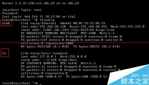 4、下面表示系統中有兩個網卡,第一個eth0相當于以太網網卡,第二個lo為無線網卡。