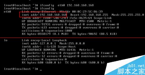 5、接著輸入命令 ifconfig eth0 *.*.*.* ,其中*號為要修改后的IP地址。