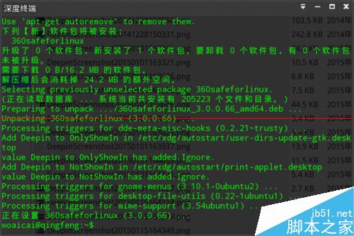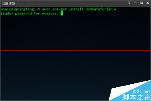 1、啟動深度終端,輸入"sudo apt-get install 360safeforlinux"回車,輸入管理員密碼