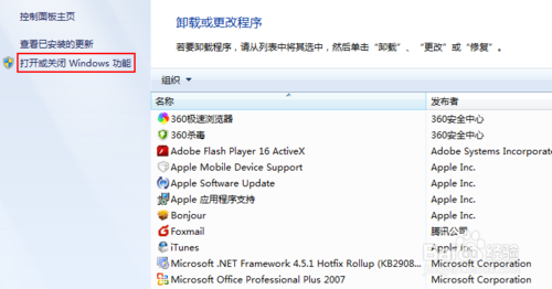 3/再在左上角點擊“打開或關閉Windows功能”。
