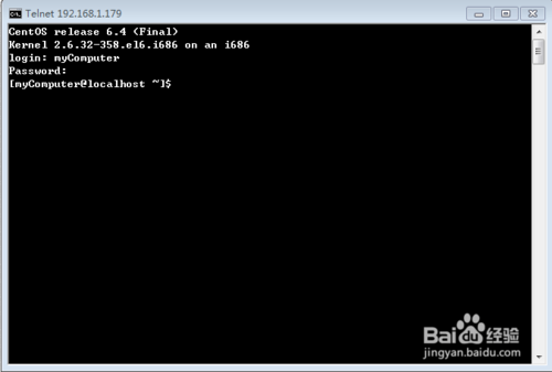 6、在Windows上,用“telnet IP地址”命令,再輸入用戶名和密碼,就可以完成Linux服務器的遠程登錄。