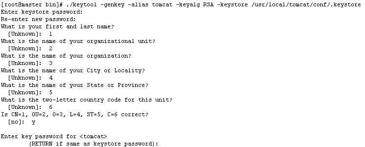 ./keytool -genkey -alias tomcat -keyalg RSA -keystore /usr/local/tomcat/conf/.keystore