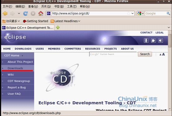 網址:www.eclipse.org/cdt/ , 點擊“Downloads”
