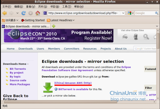就可以得到eclipse-jee-galileo-SR1-linux-gtk.tar.gz壓縮包。