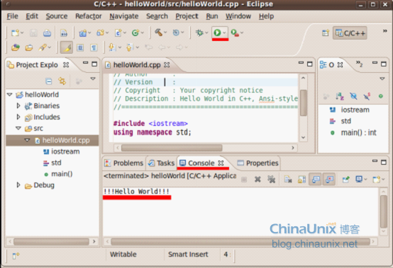 到現在為止,一個helloWorld.cpp程序已經跑起來了。